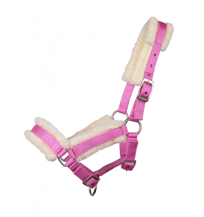 Kantar dla źrebaka podszyty syntetycznym futerkiem. Regulacja w 3 punktach pozwala na dobre dopasowanie do głowy konia.