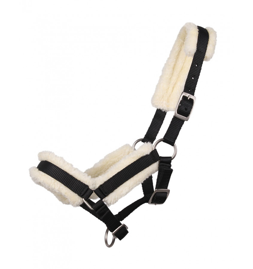 Kantar dla źrebaka podszyty syntetycznym futerkiem. Regulacja w 3 punktach pozwala na dobre dopasowanie do głowy konia.