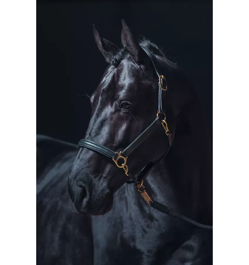 Kantar dla konia wykonany z wysokiej jakości skóry. Miękko podszyty w newralgicznych miejscach. Posiada regulowany nachrapnik oraz potylicę.