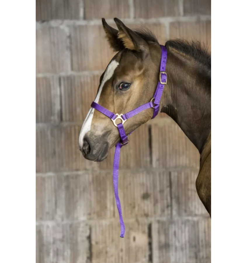 Kantar wykonany z mocnej taśmy nylonowej. Wyposażony w regulację potylicy oraz nachrapnika. Z krótkim uwiązem.