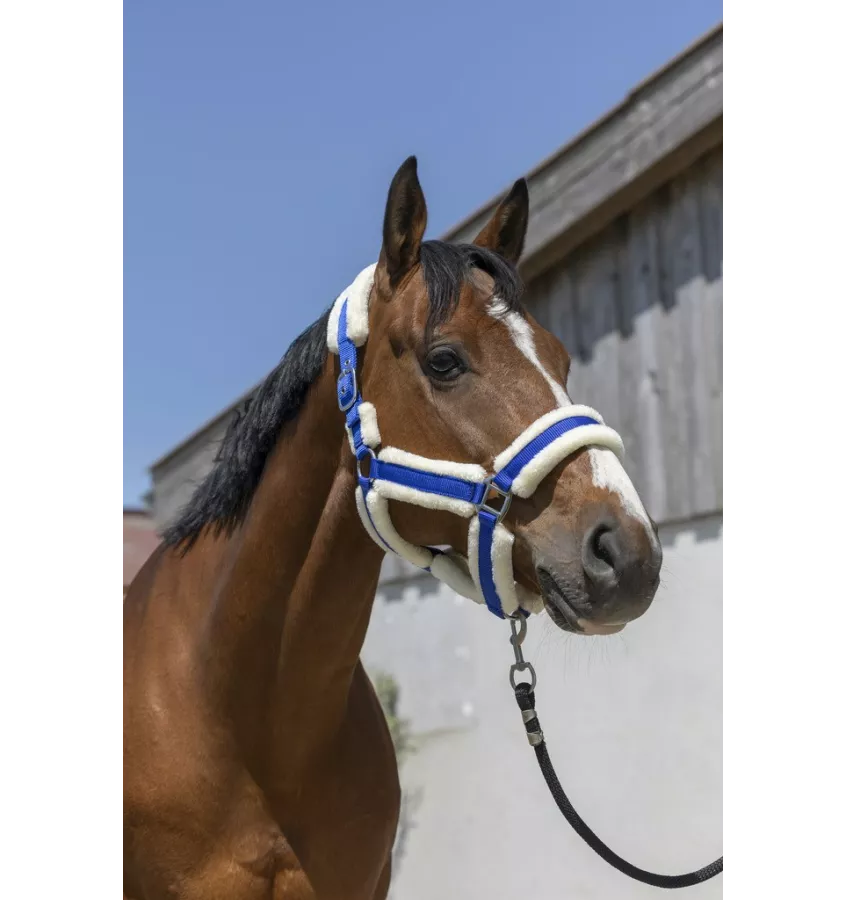 Kantar w całości podszyty syntetycznym delikatnym futerkiem. Wyposażony w podwójną regulację potylicy i regulację nachrapnika. Mocne okucia.