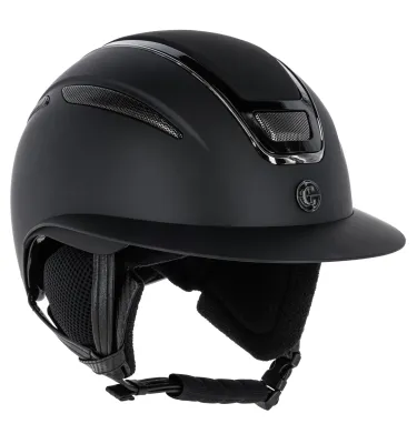 Modnie wykończony kask jeździecki. Bardzo wygodny dzięki wkładce z pianki memory, którą można odpiąć i wyprać. Pokrętło regulacji dopasowującej kask do obwodu głowy. Posiada 3-punktowy system regulacji pasków. Efektywny system wentylacji (otwory wentylacyjne z przodu i z tyłu). Elastyczny daszek. Wykonany z materiału o wysokim stopniu absorpcji uderzeń i wstrząsów, wspomaganego w tym dodatkowo przez opatentowane zastosowanie półkul absorpcyjnych w górnej części skorupy kasku. Posiada wzmocnienie przeciw naprężeniom przy bocznej deformacji