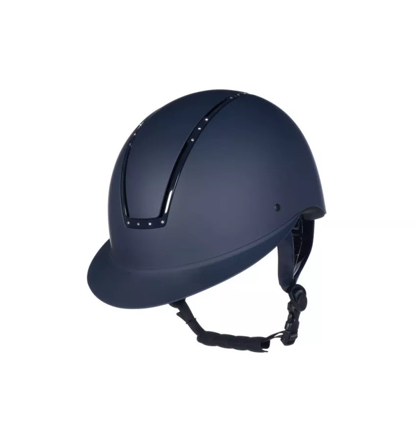 Kask jeździecki z lekką skorupą wykonaną z materiału ABS, który doskonale chroni przed urazami. Elegancki i szykowny. Zdobiony pięknymi diamencikami. Wyposażony w otwory wentylacyjne. Podszewka wewnętrzna została wykonana z materiału Cool Dry oraz siateczki szybkoschnącej. Podszewkę można prać. Kask posiada regulację.