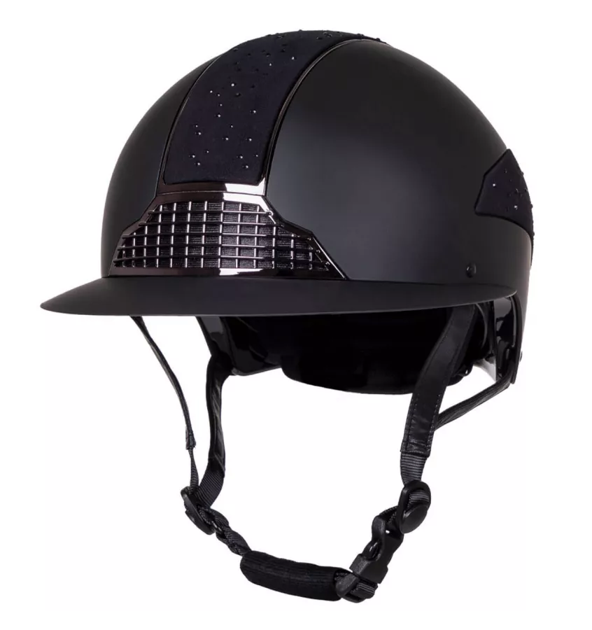 Kask ochronny do jazdy konnej Ohio z szerokim daszkiem to bardzo wygodny i elegancki model. Szerszy daszek polo zapewnia lepszą widoczność w świetle słonecznym. Ponadto jest to modny i szykowny akcent. Kask wyposażony jest w kratkę wentylacyjną, która zapewnia optymalną cyrkulację powietrza. Zewnętrzna powłoka jest wykonana z różnych materiałów, co wpływa na wyjątkowy wygląd tego modelu.