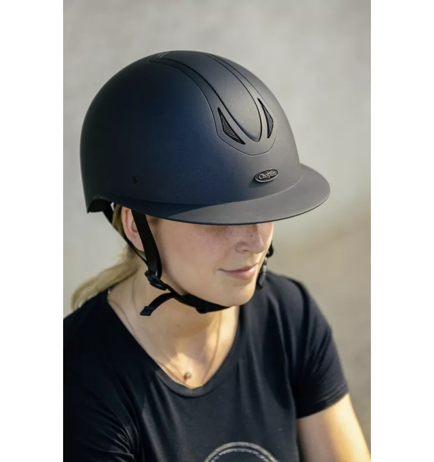 Elegancki i klasyczny kask do jazdy konnej spełnia aktualne normy bezpieczeństwa. Skorupa wykonana jest z odpornego na uderzenia EPS o wysokiej gęstości. Materiał sprawia, że kask jest lekki i posiada bardzo dobre właściwości pochłaniania wstrząsów. Kask wyposażony jest w szeroki i elastyczny daszek oraz miękką wyściółkę pod brodą.