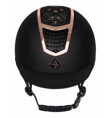 Kask Lady Shield posiada szeroki daszek. Jest bardzo elegancki i pięknie prezentuje się na głowie. Wykonany z najwyższej jakości materiałów. Zewnętrzna skorupa została wykonana z PCV, która doskonale chroni przed wstrząsami i uderzeniami oraz pochłania energię wytworzoną w trakcie upadku. Wkładka wewnętrzna jest wymienna i można ją prać. Z tyłu głowy znajduje się pokrętło do regulacji kasku.