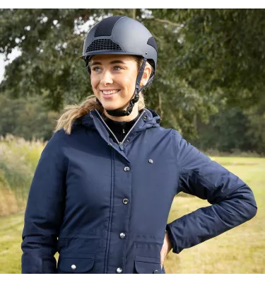 Kask Lady Shield posiada szeroki daszek. Jest bardzo elegancki i pięknie prezentuje się na głowie. Wykonany z najwyższej jakości materiałów. Zewnętrzna skorupa została wykonana z PCV, która doskonale chroni przed wstrząsami i uderzeniami oraz pochłania energię wytworzoną w trakcie upadku. Wkładka wewnętrzna jest wymienna i można ją prać. Z tyłu głowy znajduje się pokrętło do regulacji kasku.