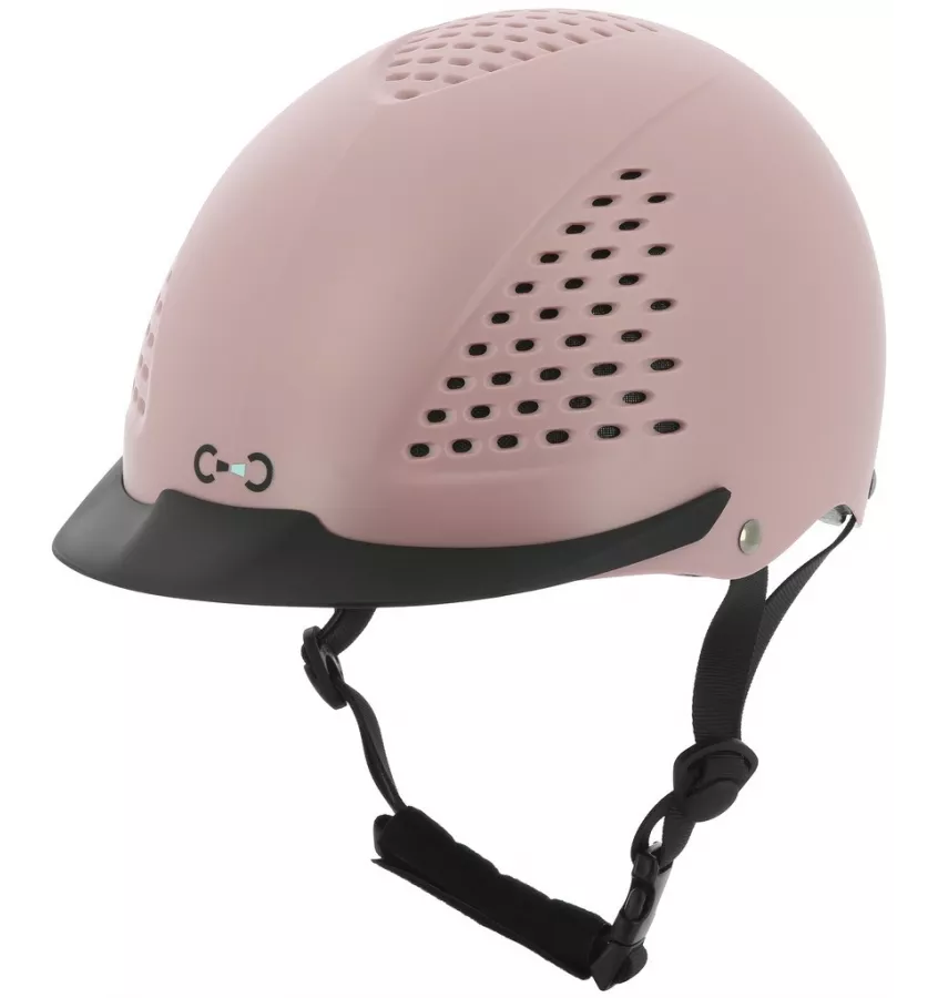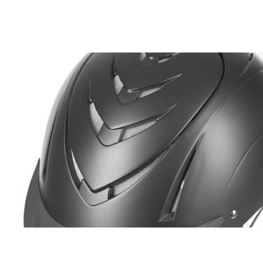 Kask jeździecki o niezwykle małej wadze 460g. Wysoka odporność na uderzenia: ultralekka skorupa ABS o dużej gęstości w połączeniu z wewnętrzną wyściółką EPS (spieniony polistyren), która zapewnia wysoką amortyzację. Optymalna wentylacja: wyściełana podszewka z wentylowanymi obszarami odprowadzającymi pot, uzupełniona przednim i górnym systemem wentylacji zapewniającym dobry przepływ powietrza wewnątrz. Wewnętrzna wyściółka odpinana na rzepy. Regulacja za pomocą pokrętła.