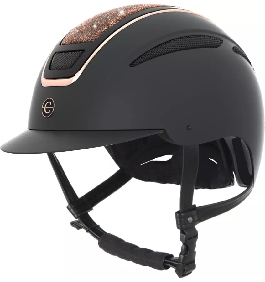 Kask jeździecki Elite - elegancki i klasyczny o doskonałym dopasowaniu, z błyszczącą aplikacją. Miękkie, wysokiej jakości paski mocujące wykończone sztuczną skórą. Posiada system Disc pozwalający na płynne dopasowywanie opaski głowy do jej obwodu przy użyciu tylko jednej ręki. Doskonały układ wentylacji zapewnia optymalny komfort. Miękko wyściełana wyściółka wewnętrzna jest wyjmowana, co ułatwia utrzymanie czystości. Bardzo twarda skorupa kasku wykonana z ABS. 4-punktowe mocowanie.