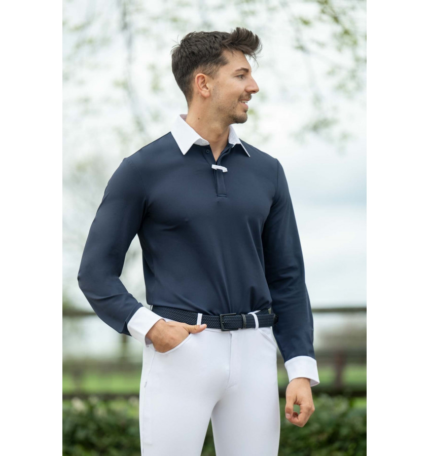 Koszula konkursowa męska wykonana z materiału oddychającego. Elastyczna i komfortowa w noszeniu. Wyposażona w ukrytą plise guzikową i pętle na krawat.