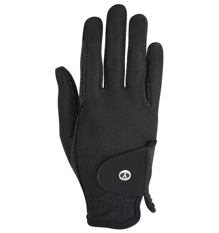 Rękawiczki jeździeckie idealne do jazdy w upalne dni. Wierzch dłoni wykonany przepuszczającej powietrze siateczki. Spód wykonany z materiału tekstylnego pokrytego nadrukiem silikonowym, dzięki czemu wodze nie wyślizgują się z rąk. Wyposażone w dodatkowe wzmocnienia w miejscu trzymania wodzy.