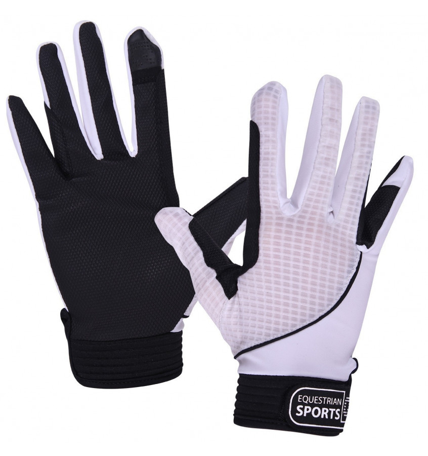 Rękawiczki do jazdy konnej Air Flow wykonane z wysokiej jakości przepuszczającego powietrze materiału, którą zapewnia oddychająca siateczka na górze. Siateczka jest bardzo elastyczna co zapewnia wygodę w użytkowaniu rękawiczek. Spód dłoni wykonany z antypoślizgowego materiału dodatkowo wzmocnienie w miejscu trzymania wodzy. Zapinane na rzep. Elastyczna wstawka w nadgarstku ułatwia zakładanie. Idealne rękawiczki jeździeckie na lato. Elastyczny materiał oraz sportowy wygląd sprawia, że rękawiczki będą pasować dla kobiet, mężczyzn oraz młodzieży.