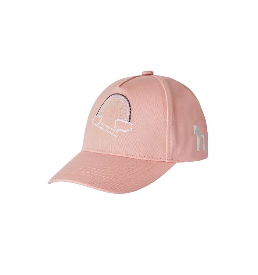 Czapka jest praktyczna, a zarazem atrakcyjna - uroku dodaje jej śliczny haft z przodu i mały hologram w postaci literki 'h' z boku. Na czapce pastelową nicią wyhaftowano tekst 'I find happiness in rainbows and horses'.