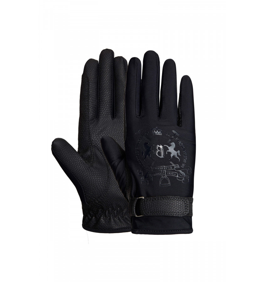 Ten ponadczasowy, elegancki model możesz nosić przez cały rok. Elastyczny materia na grzbiecie dłoni sprawia, że rękawiczki są niebywale wygodne, a materiał po wewnętrznej stronie dłoni pozwala pewnie chwycić za wodze. Regulowane zapięcie na rzep na nadgarstku utrzymuje rękawiczkę na miejscu. Design uzupełnia delikatne, wytłoczone na gorąco logo na grzbiecie dłoni.
