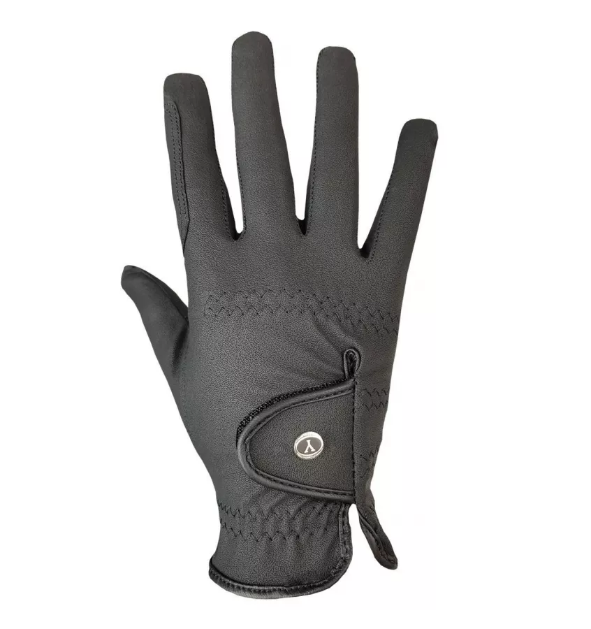 Wygodne rękawiczki jeździeckie wykonane z materiału imitującego skórę. Posiadają wzmocnienia w miejscu trzymania wodzy. Zapinane na rzep.