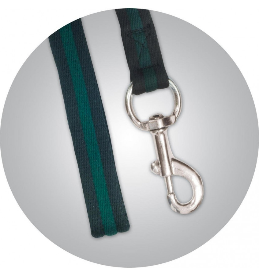 Dwukolorowa lonża bawełniana. Wszystkie kolory mają srebrne karabińczyki. Długość: 8,5 m