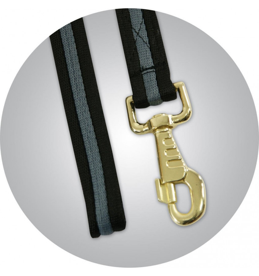 Dwukolorowa lonża bawełniana. Wszystkie kolory mają srebrne karabińczyki. Długość: 8,5 m
