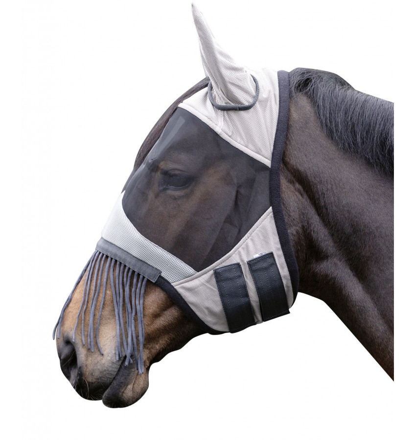 Maska skutecznie chroniąca przed owadami głowę konia. Wykonana z wysokiej jakości siateczki odpornej na przedarcia. Z frędzlami na chrapy.