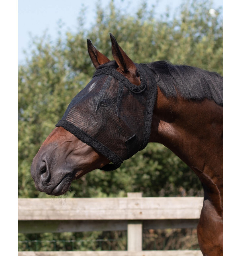 Maska przeciw owadom wykonana z bardzo mocnego, trwałego materiału. Posiada drobne oczka, dzięki czemu nawet najmniejszy owad nie przedostanie się pod maskę. Chroni głowę konia. Można korzystać z niej również podczas treningu zakładając ją na ogłowie. Brzegi zakończone sztucznym futerkiem.