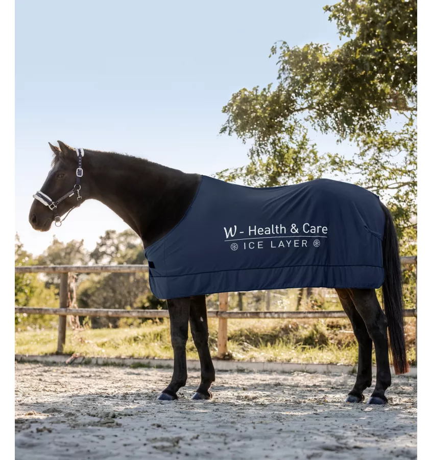 Innowacyjna derka chłodząca. Waldhausen Health & Care Ice Layer to idealne rozwiązanie, aby ochłodzić konia w gorące letnie dni. Dzięki derce Ice Layer można zaoszczędzić wodę i jednocześnie równomiernie obniżyć temperaturę ciała konia. Derka posiada praktyczną torbę, którą wraz z derką zanurza się w wiadrze z wodą. Specjalne materiały sprawiają, że woda powoli odparowuje i odprowadza ciepło, co daje przyjemny efekt chłodzenia. Produkt zapinany jest na klatce piersiowej za pomocą klipsa.