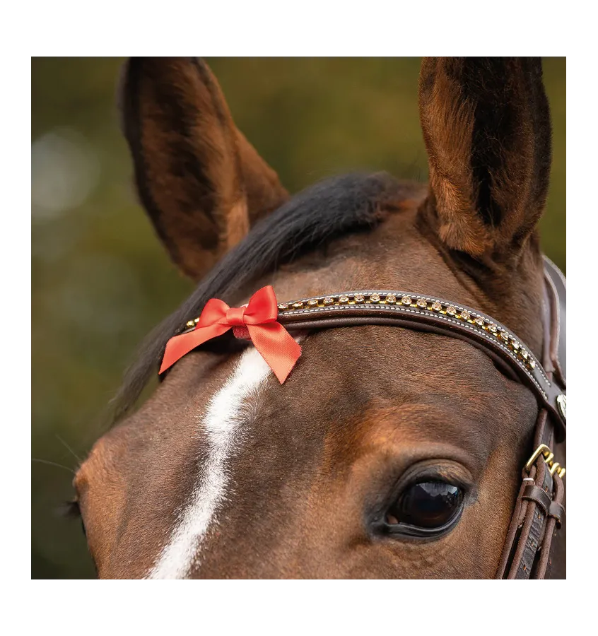 Tę czerwoną kokardę ostrzegawczą można łatwo przymocować do naczółka za pomocą rzepu. Kokarda ostrzega innych jeźdźców, aby zachowali bezpieczną odległość od konia, aby uniknąć nieprzyjemnych sytuacji.
