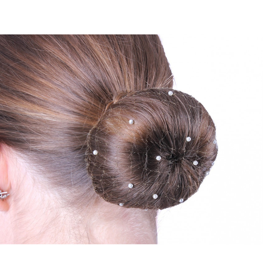 Bardzo delikatna a zarazem elastyczna siatka do włosów. Ozdobiona imitacją pereł. Prawie niewidoczna na włosach. Idealnie sprawdzi się podczas zawodów, aby zabezpieczyć włosy.
