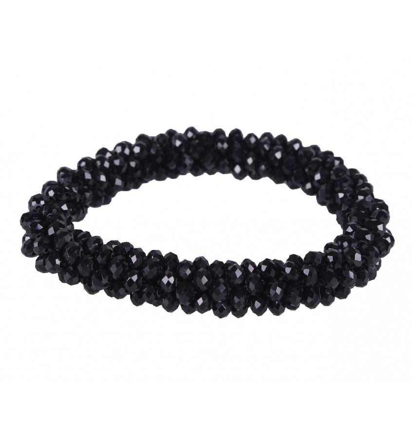 Gumka do włosów scrunchie pokryta błyszczącymi kamyczkami. Może być używana jako bransoletka.