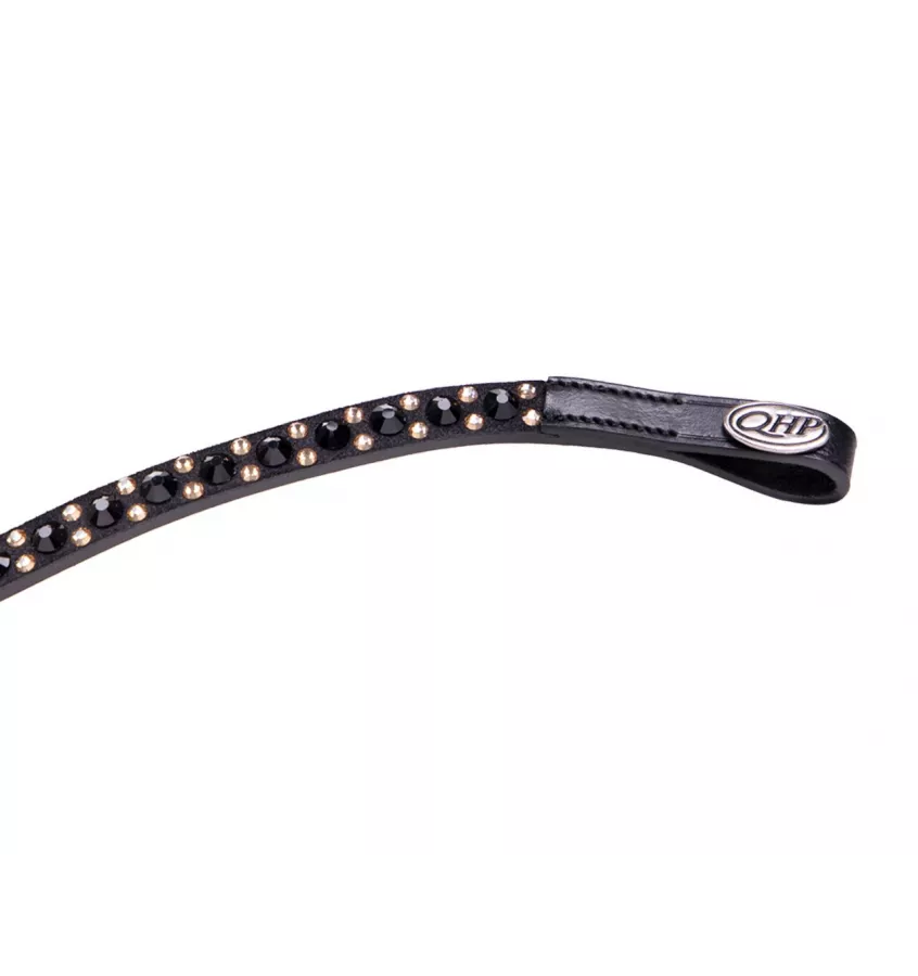 Naczółek o kształcie fali. Zdobione diamencikami w dwóch kolorach. Wykonany z naturalnej skóry.