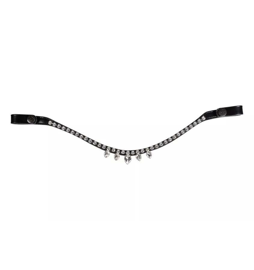 Opadający naczółek Alisha. Zdobiony pięknymi diamencikami. Duże opadające kryształki na środku naczółka dodają uroku. Naczółek wykonany ze skóry naturalnej. Zapinany na zatrzaski, które ułatwiają użytkowanie.