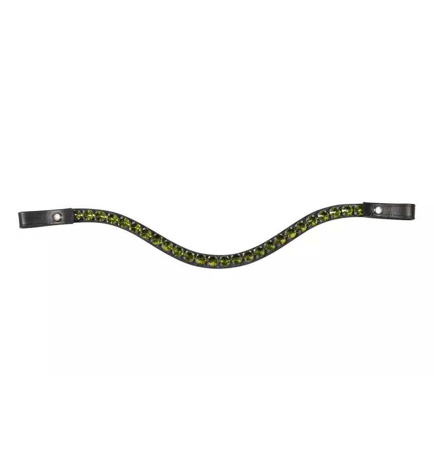 Skórzany naczółek w kształcie litery U. Zdobiony pięknymi kryształami. Zapinany i odpinany na zatrzask.