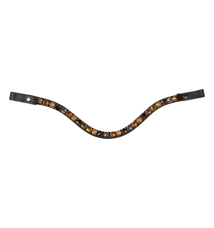 Skórzany naczółek w kształcie litery U. Zdobiony pięknymi kryształami. Zapinany i odpinany na zatrzask.