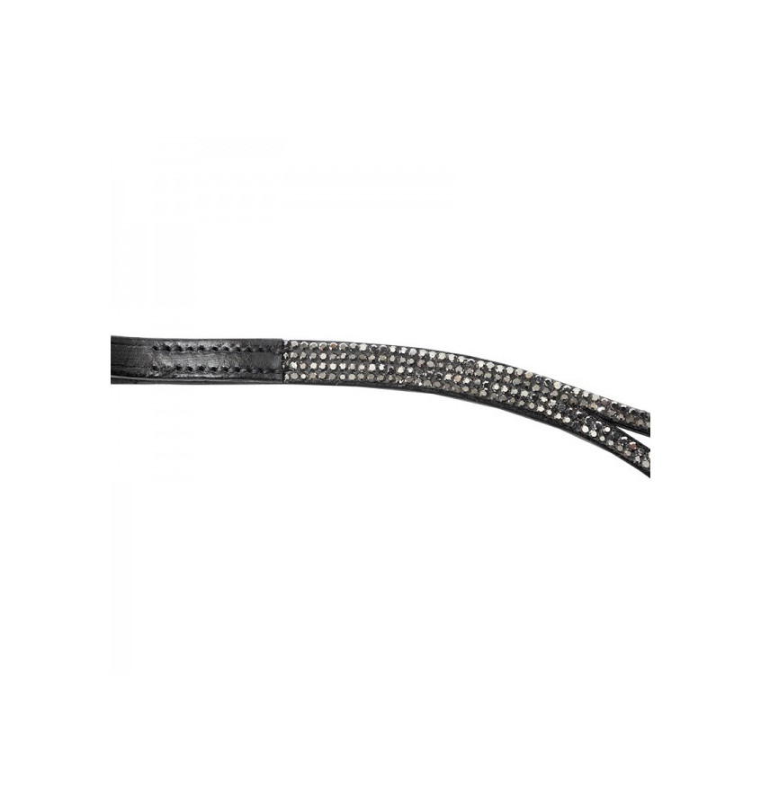 Naczółek wykonany ze skóry, ozdobiony eleganckimi kamyczkami. Składa się z dwóch rzędów.