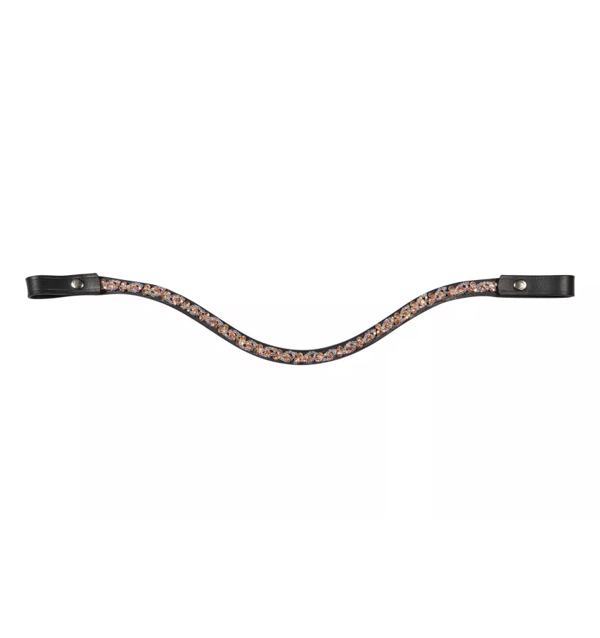 Skórzany naczółek w kształcie litery U. Zdobiony pięknymi kryształami. Zapinany i odpinany na zatrzask.