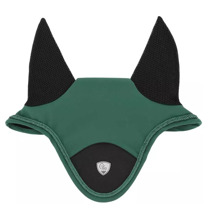 Nauszniki dla konia z eleganckim wykończeniem, ozdobione dwoma cienkimi sznurkami. Miejsce uszu zostało wykonane z siateczki, które zapewnia dobrą wentylację. Wykończenie z materiału 1680D. Silikonowy nadruk na potylicy zabopiega przesuwaniu się nauszników.