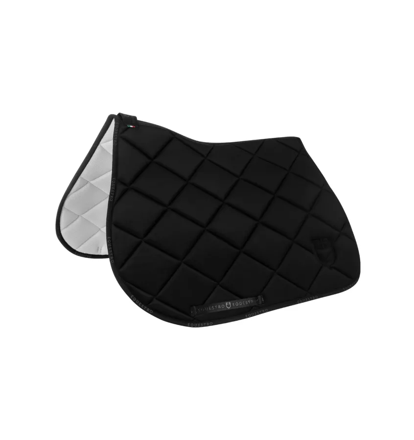 Czaprak skokowy wykonany z wyściełanej tkaniny technicznej, która minimalizuje przemieszczenia siodła i uderzenia, zapobiegając wszelkiego rodzaju dermabrazji.