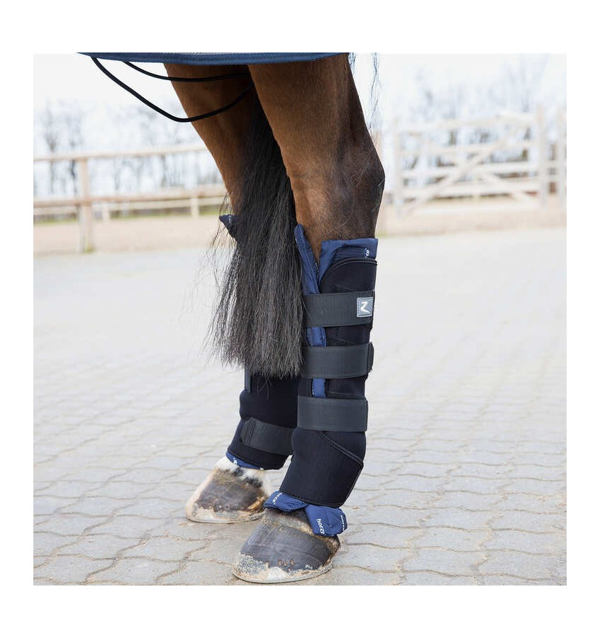 Ochraniacze stajenne Horze "Supreme" tylne. Wykonane są z grubego i mocnego neoprenu, zapinane na rzepy. Neopren posiada malutkie otwory dzięki czemu ochraniacz jest oddychający. Wewnętrzny ocieplacz jest odpinany aby można je było łatwo wyprać. Komplet zawiera 2 szt ochraniaczy (para).