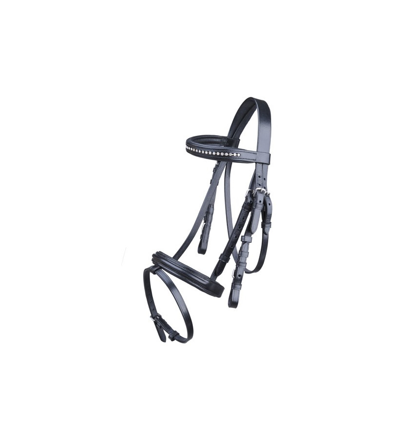 Ogłowie firmy HKM Mini Shetty. Posiada nachrapnik zwykły. Wykonane z wysokiej jakości skóry. Miękko podszyty na nagłówku i nachrapniku.