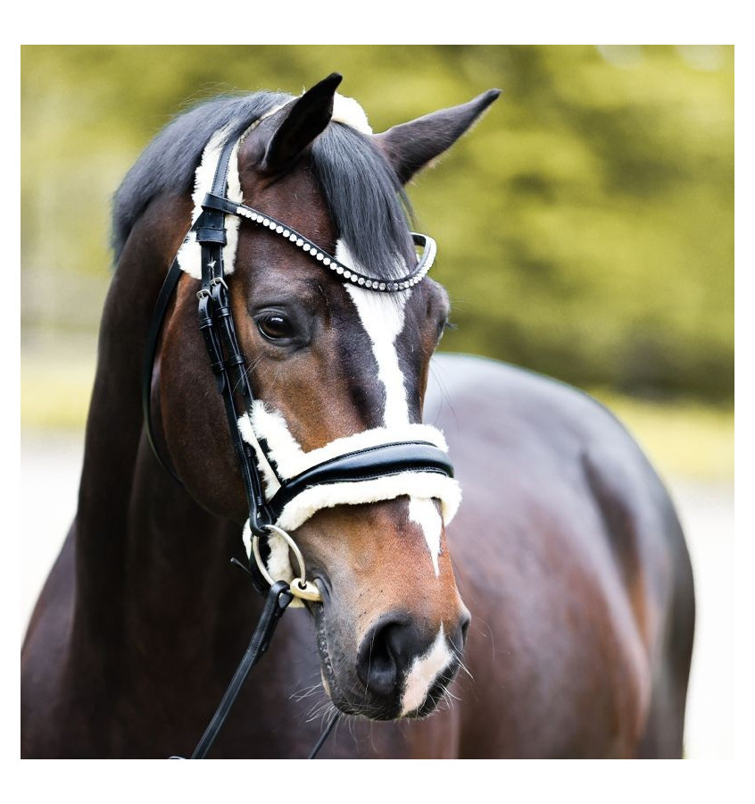 Ogłowie „Joyce” KavalSH4 to większy komfort dla wrażliwych koni. Wykonane jest z wysokiej jakości skóry, a odpinane naturalne futro jagnięce zapewnia koniowi dodatkowy komfort. Aby zapewnić większą swobodę ucha, nagłówek wyprofilowano anatomicznie. Naczółek opadający ozdobiony małymi białymi cyrkoniami. W komplecie gumowane wodze ze stoperami (16 mm). Ogłowia z dodatkiem „KavalSH4” to ogłowia, w których można wyjąć skośnik. Cechą szczególną jest to, że mocowanie skośnika nie jest widoczne.