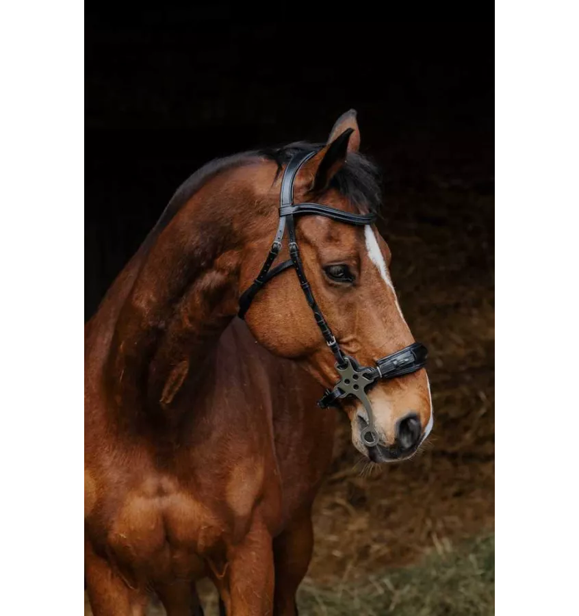 W pełni regulowane ogłowie Hackamore. Wykonane z wysokiej jakości skóry bydlęcej. Okucia ze stali nierdzewnej. Idealne dla koni, które nie akceptują wędzidła.