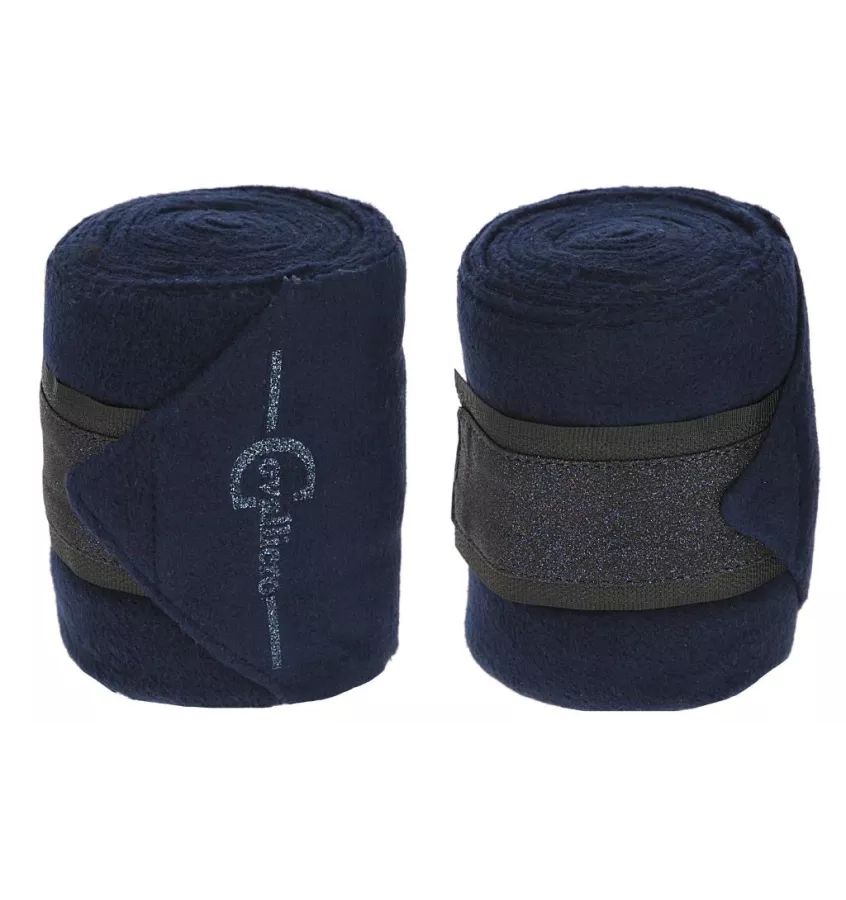 Owijki polarowe dla konia z subtelnymi aplikacjami z brokatem. Chroni mięśnie i ścięgna oraz zapobiega kontuzjom. Zapinane na rzep.