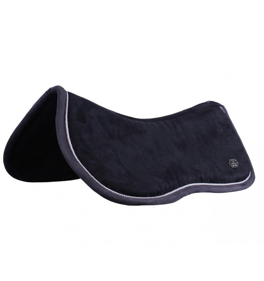 Podkładka pod siodło wypełniona pianką memory, która dopasowuje się do siodła oraz grzbietu konia, aby zapewnić mu optymalne dopasowanie, lepszy rozkład nacisku i amortyzację. Ozdobiona kontrastową lamówką.