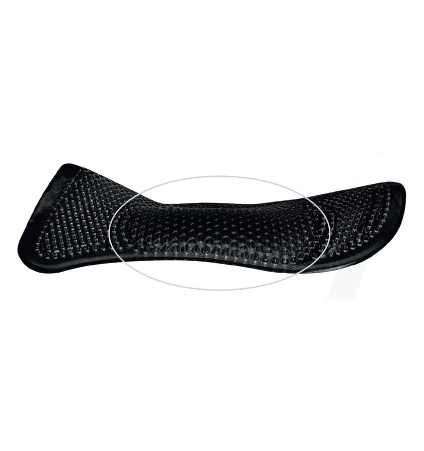 Korekcyjna podkładka żelowa łącząca w sobie 3 funkcje - podnosi środek siodła, jest antypoślizgowa i amortyzuje wstrząsy. Anatomicznie wyprofilowana, pomaga w dopasowaniu siodła na nietypowo zbudowanych koniach z wklęsłym grzbietem. Dodatkowe pogrubienie z żelu amortyzującego wstrząsy stanowi poduszkę pod środkiem siodła, gdzie koncentruje się największy nacisk jeźdźca. Wyjątkowa struktura żelu pozwala na dopasowanie się go do kształtu siodła oraz zapewnia cyrkulacje powietrza.