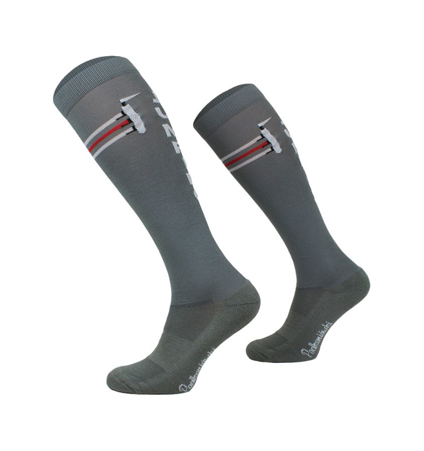 Podkolanówki jeździeckie wykonane z najwyższej jakości bawełny z dodatkiem włókien elastycznych. Ściągacz w śródstopiu utrzymuje skarpetę na miejscu. Posiadają wzmacnianą stopę frotte oraz nieuciskający ściągacz.