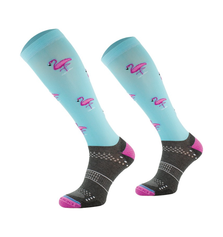 Podkolanówki jeździeckie wykonane z wysokiej jakości materiałów z dodatkiem włókien elastycznych. Ściągacz w śródstopiu utrzymuje skarpetę na miejscu. Posiadają nieuciskający ściągacz.