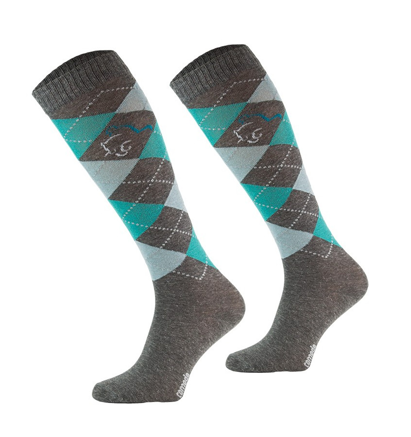 Klasyczne podkolanówki jeździeckie wykonane z najwyższej jakości bawełny z dodatkiem włókien elastycznych. Ściągacz w śródstopiu utrzymuje skarpetę na miejscu. Posiadają wzmacnianą stopę frotte oraz nieuciskający ściągacz.