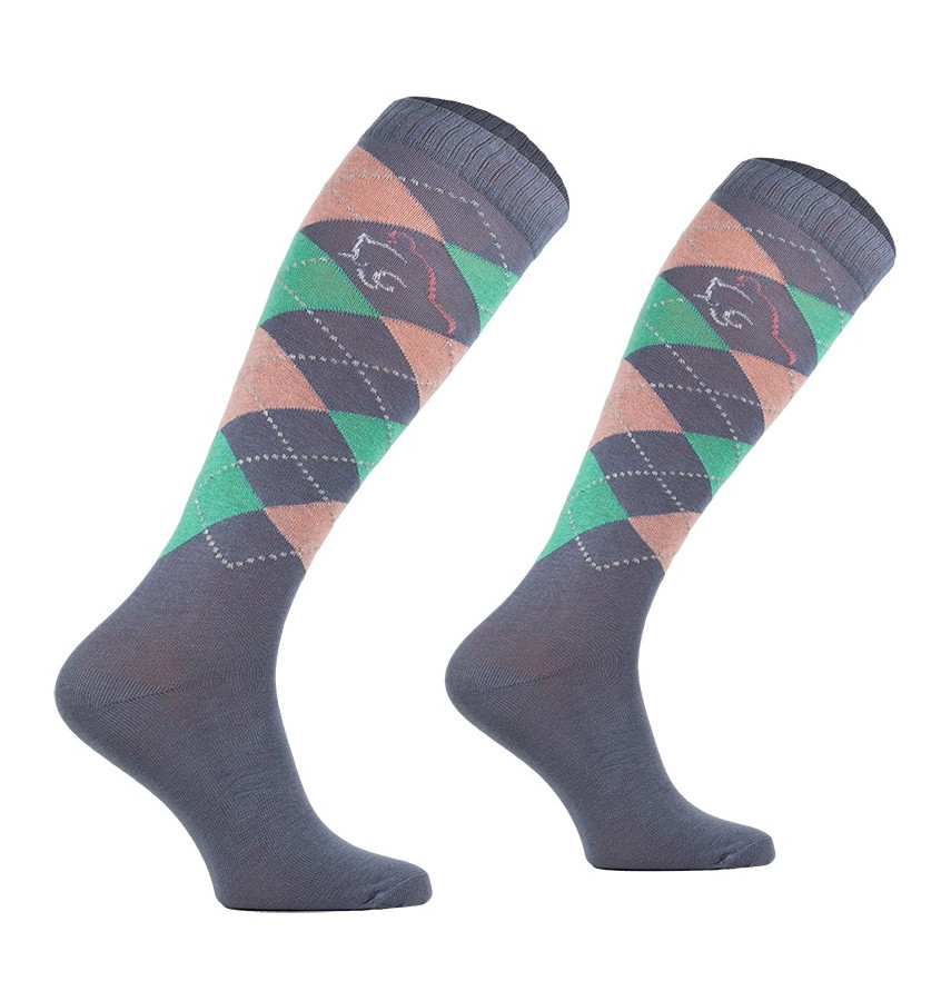 Klasyczne podkolanówki jeździeckie wykonane z najwyższej jakości bawełny z dodatkiem włókien elastycznych. Ściągacz w śródstopiu utrzymuje skarpetę na miejscu. Posiadają wzmacnianą stopę frotte oraz nieuciskający ściągacz.