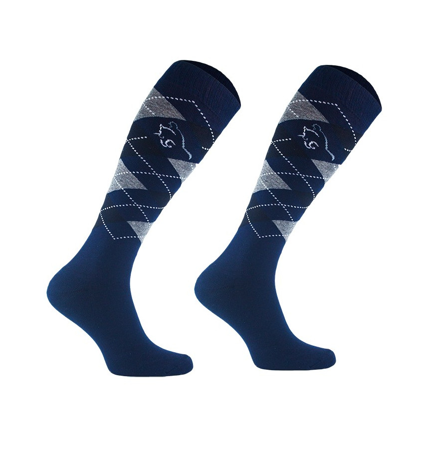 Klasyczne podkolanówki jeździeckie wykonane z najwyższej jakości bawełny z dodatkiem włókien elastycznych. Ściągacz w śródstopiu utrzymuje skarpetę na miejscu. Posiadają wzmacnianą stopę frotte oraz nieuciskający ściągacz.