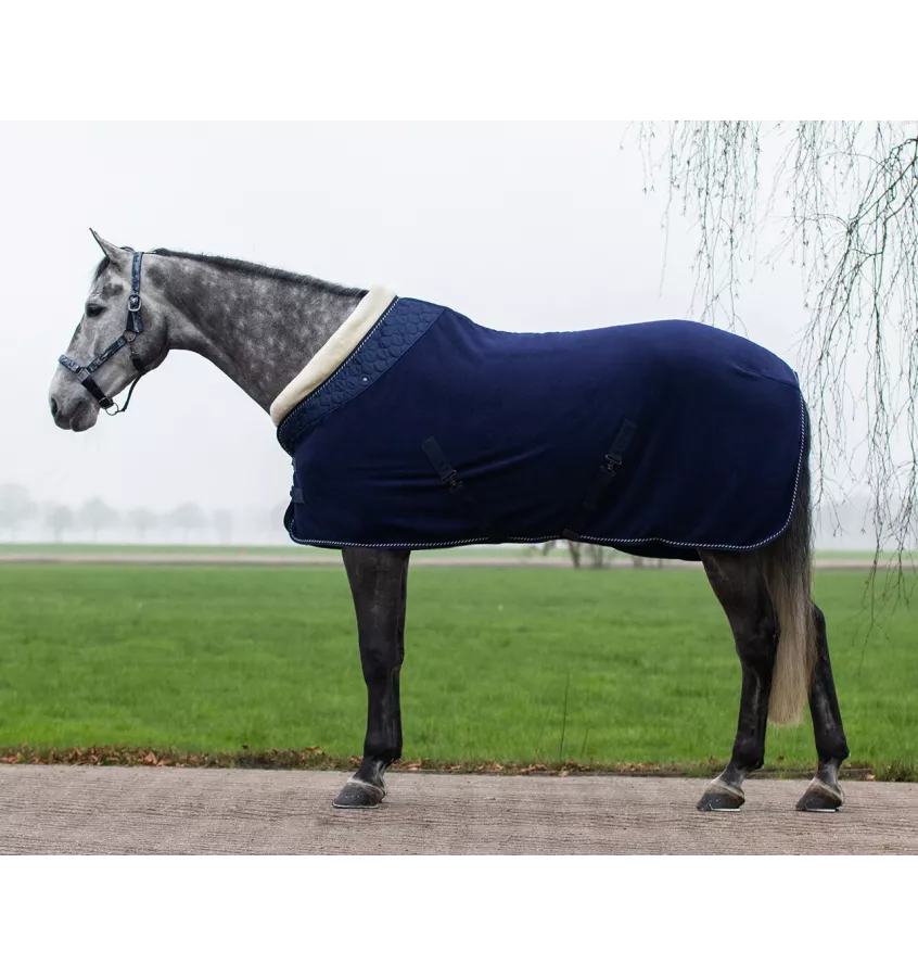 Elegancka derka polarowa wyposażona w kołnierz wykonany ze sztucznego futerka. Pod kołnierzem zajduje się satynowa wstawka, która dodaje uroku. Całość uzupełnia dwukolorowy ozdobny sznurek. Derka posiada pasy krzyżowe, które można wypiąć.
