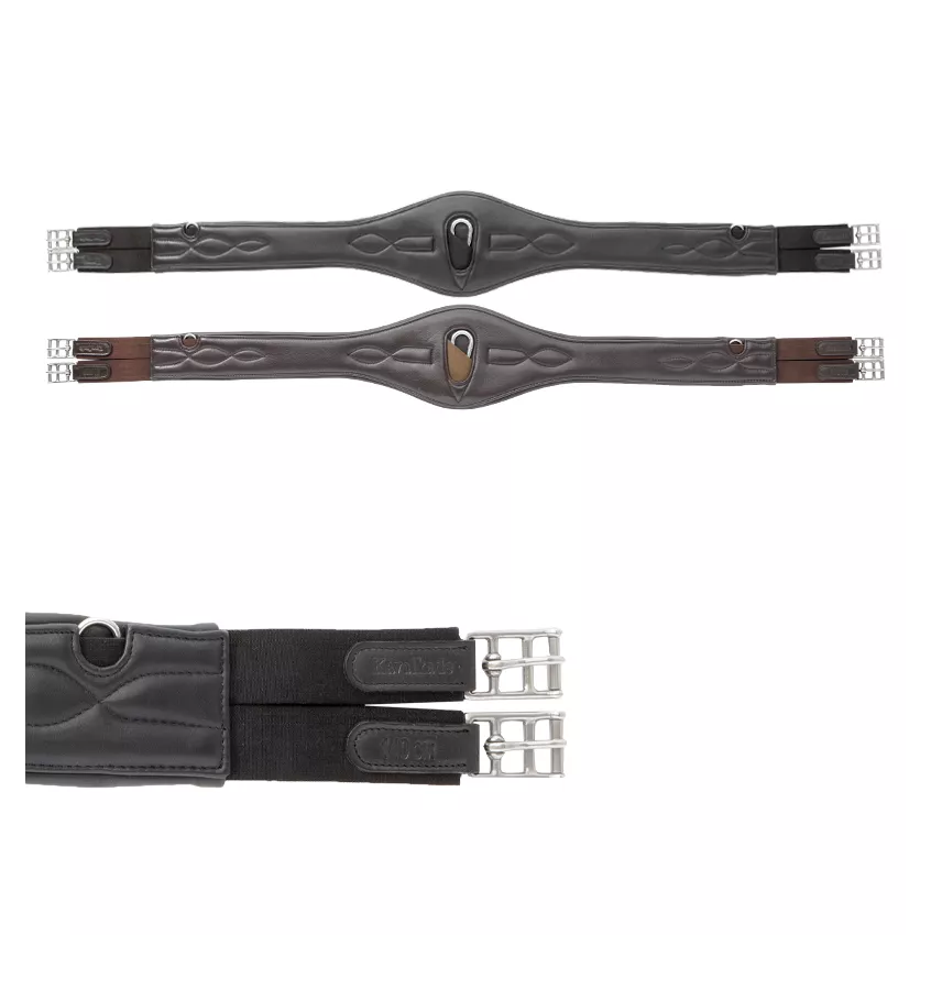 Popręg wykonany z wysokiej jakości skóry oraz specjalnych miękkich tworzyw z eleganckimi szwami. Ten popręg gwarantuje komfort i wygodę konia. Posiada elastyczne paski i obrotowe sprzączki ze stali nierdzewnej po obu stronach, anatomiczny kształt oraz gumy z dwóch stron.