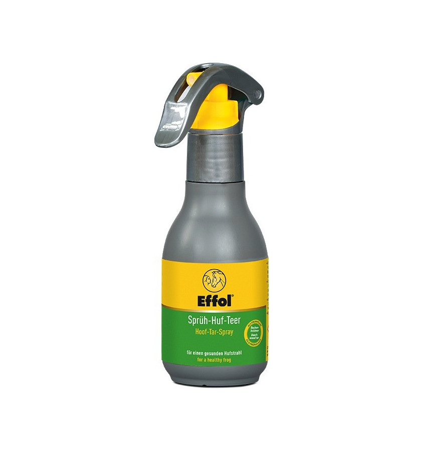 Hoof Tar to dziegieć w sprayu, który służy do podstawowej pielęgnacji strzałek i podeszwy kopyta. Chroni przed gniciem i nadmierną wilgocią. Tworzy długotrwałą barierę ochronną przed wilgocią i bakteriami. Szczególnie zalecany do użycia po wizycie kowala. Hoof Tar to roztwór smoły bukowej i alkoholu.